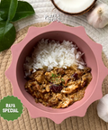 Our Rendang Rice Bowl brings everything together in one hearty, ready-to-serve meal — fragrant jasmine rice paired with our slow-cooked baby-friendly chicken rendang.