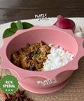 Our Rendang Rice Bowl brings everything together in one hearty, ready-to-serve meal — fragrant jasmine rice paired with our slow-cooked baby-friendly chicken rendang.