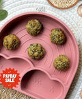 Our Baked Chicken Meatballs are a wholesome and protein-packed option for your little one! Made with chicken, vitamin-rich mushrooms, and superfoods spinach and quinoa, these meatballs are carefully baked to be slightly crispy on the outside, and soft on the inside.